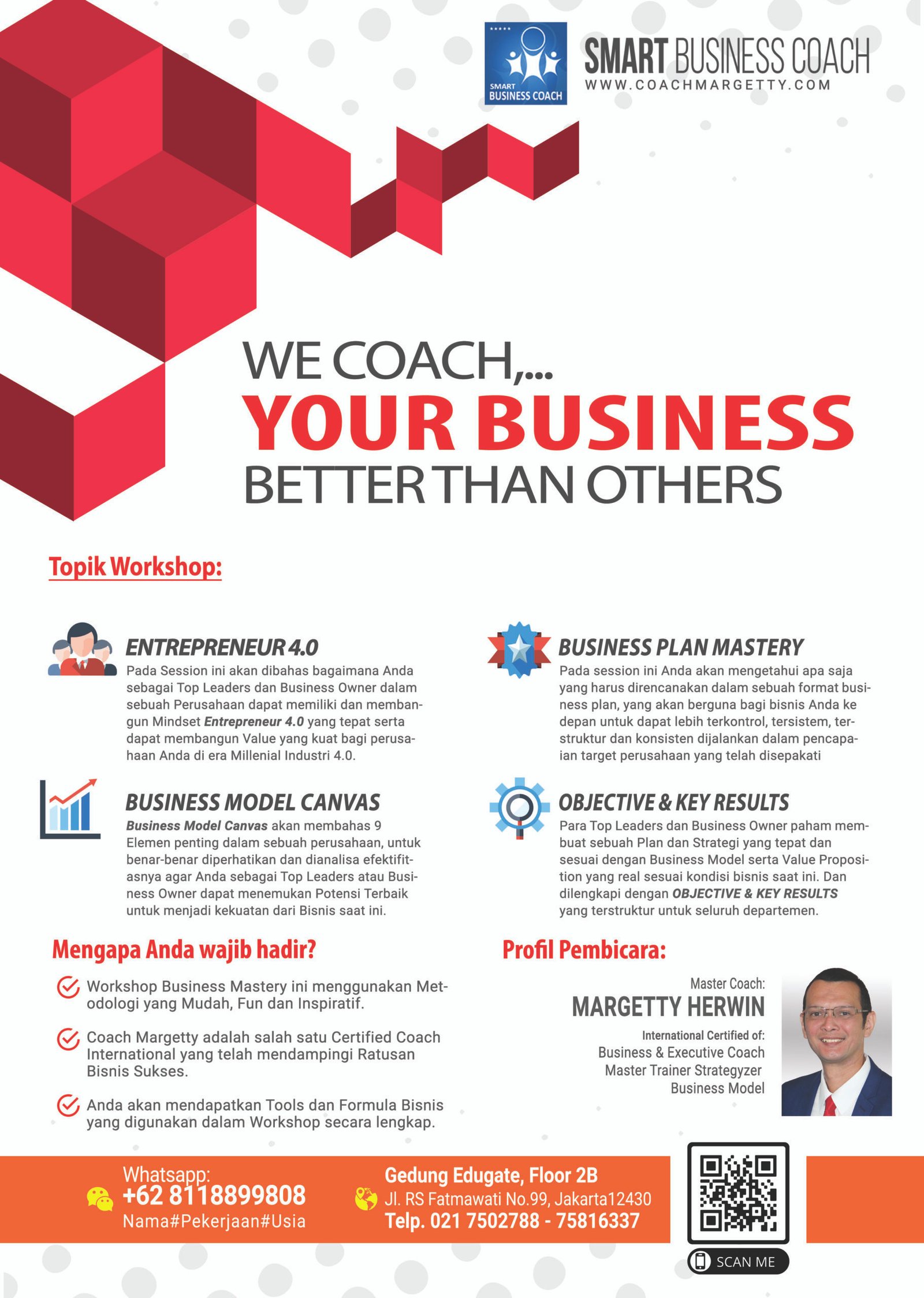 Silakan isi FORM di bawah ini untuk diaturkan waktu pertemuan FREE Coaching Session dengan Master Coach Margetty Herwin atau mendaftar Seminar, Workshop, Masterclass Training atau pembelian Boardgame JACKS MILYARDER, agar bisnis Anda tumbuh dengan Program Business Coaching: