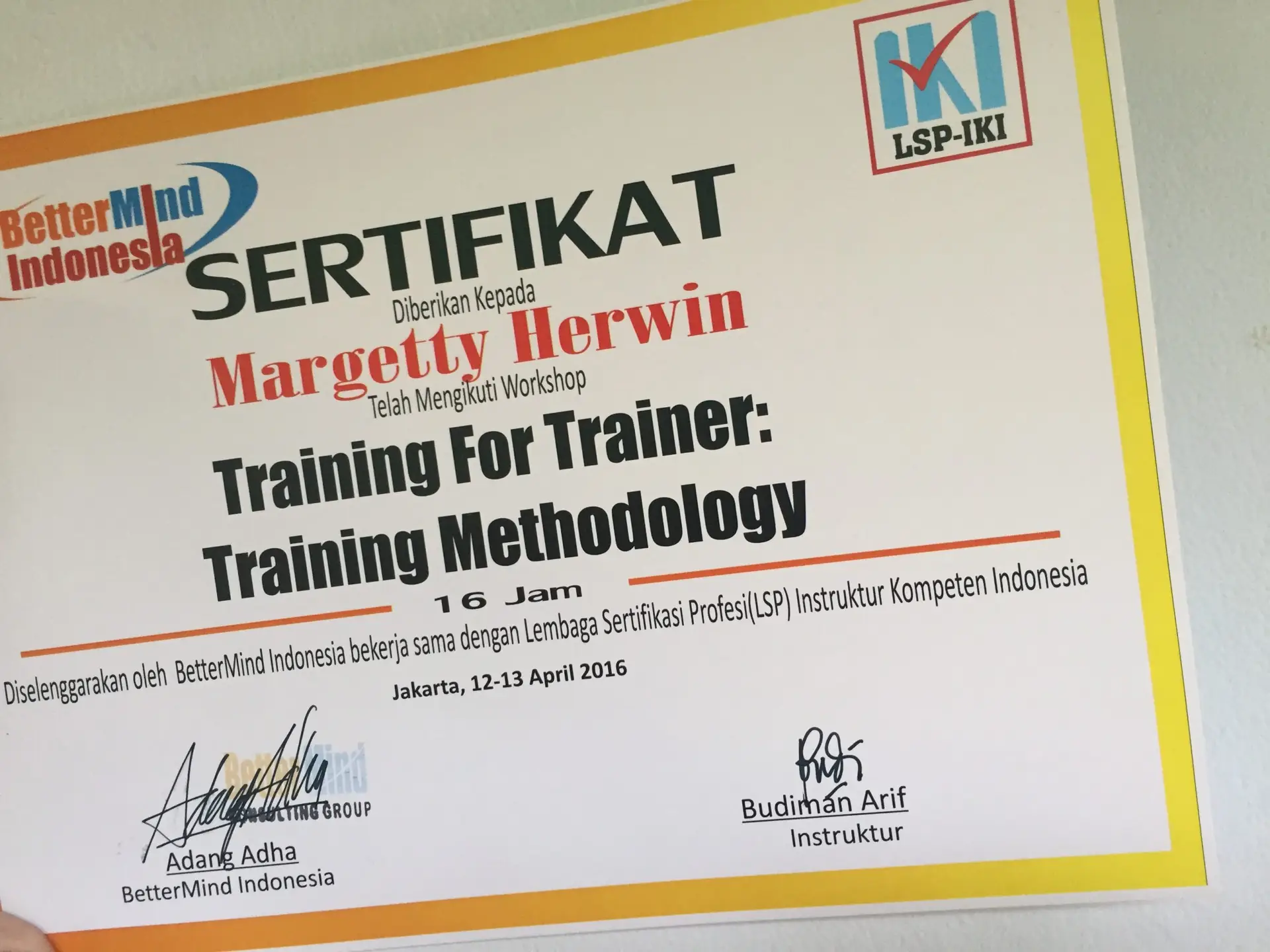 Sejak saya menjadi Coach dalam 8 tahun terakhir (sejak 2008), dimana saya telah tersertifikasi secara Internasional dari beberapa Institusi Sertifikasi Internasional sebagai seorang Coach, Trainer maupun Konsultan, ternyata perlu juga mengikuti Uji Kompetensi secara Nasional oleh BNSP untuk mendapat pengakuan sebagai Instruktur Utama yang Kompeten.